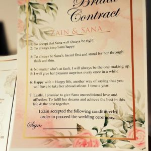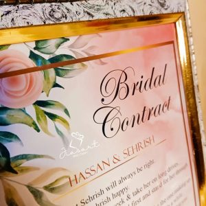 Pink Floral Bridal Contract With Black Gold Frame in A4