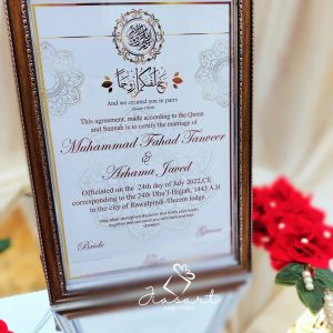 Gold Nikkah Nama with Maroon Gold Frame A4