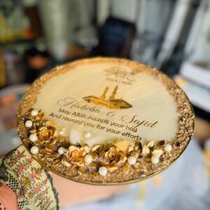 Umrah Mubarak Resin tray in opal and white color 10 inches