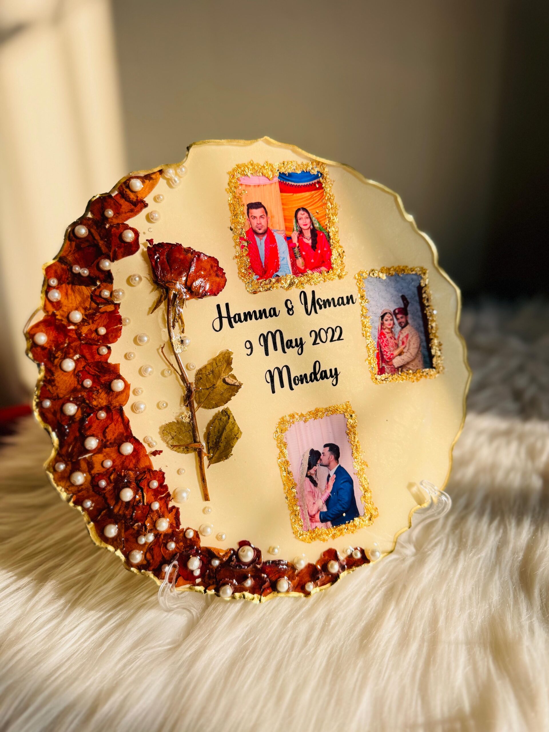 10 inches couple Resin tray customized for aniversary Flower preserved