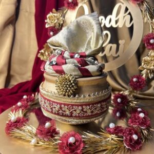Doodh Pilai glass and tray in red & golden color