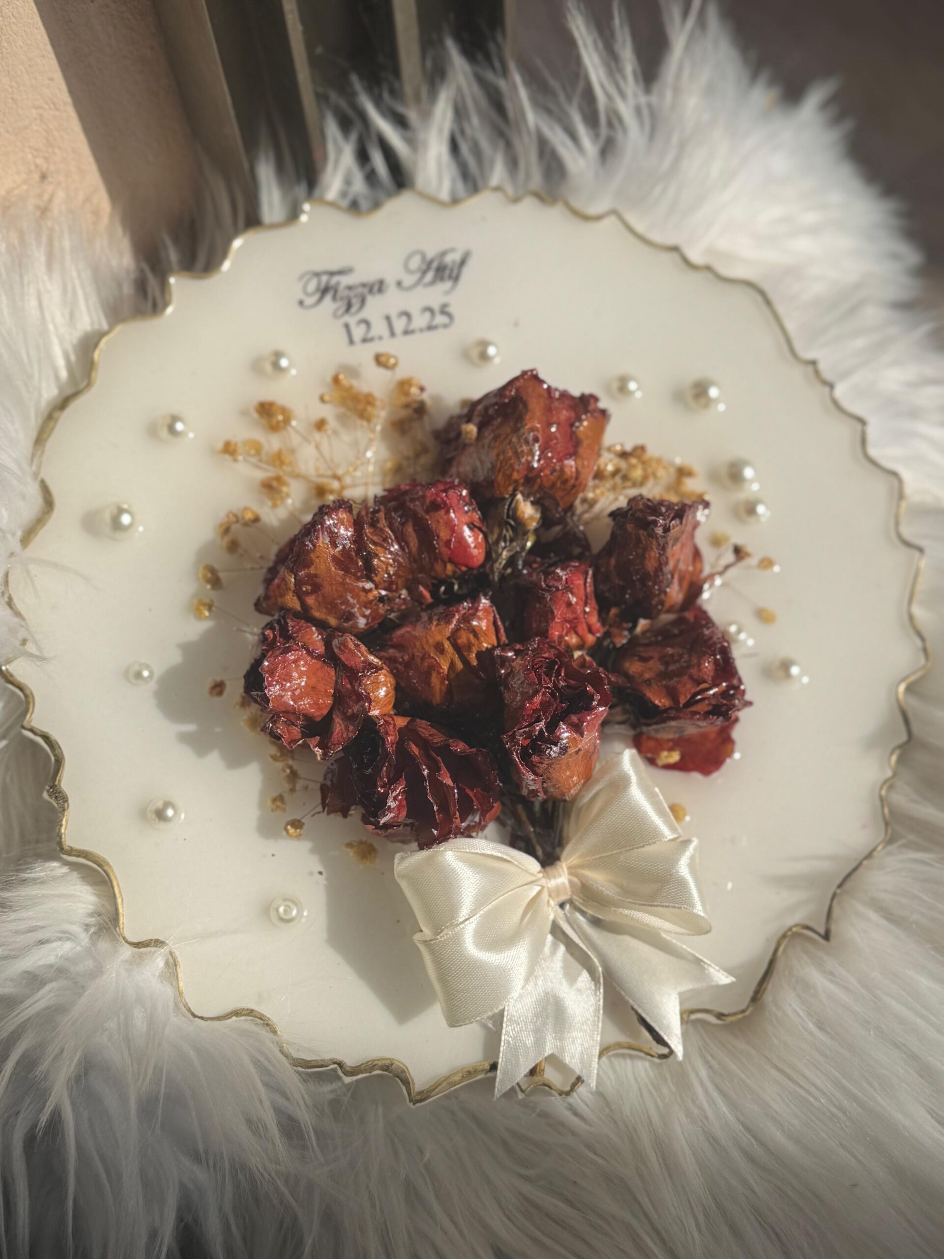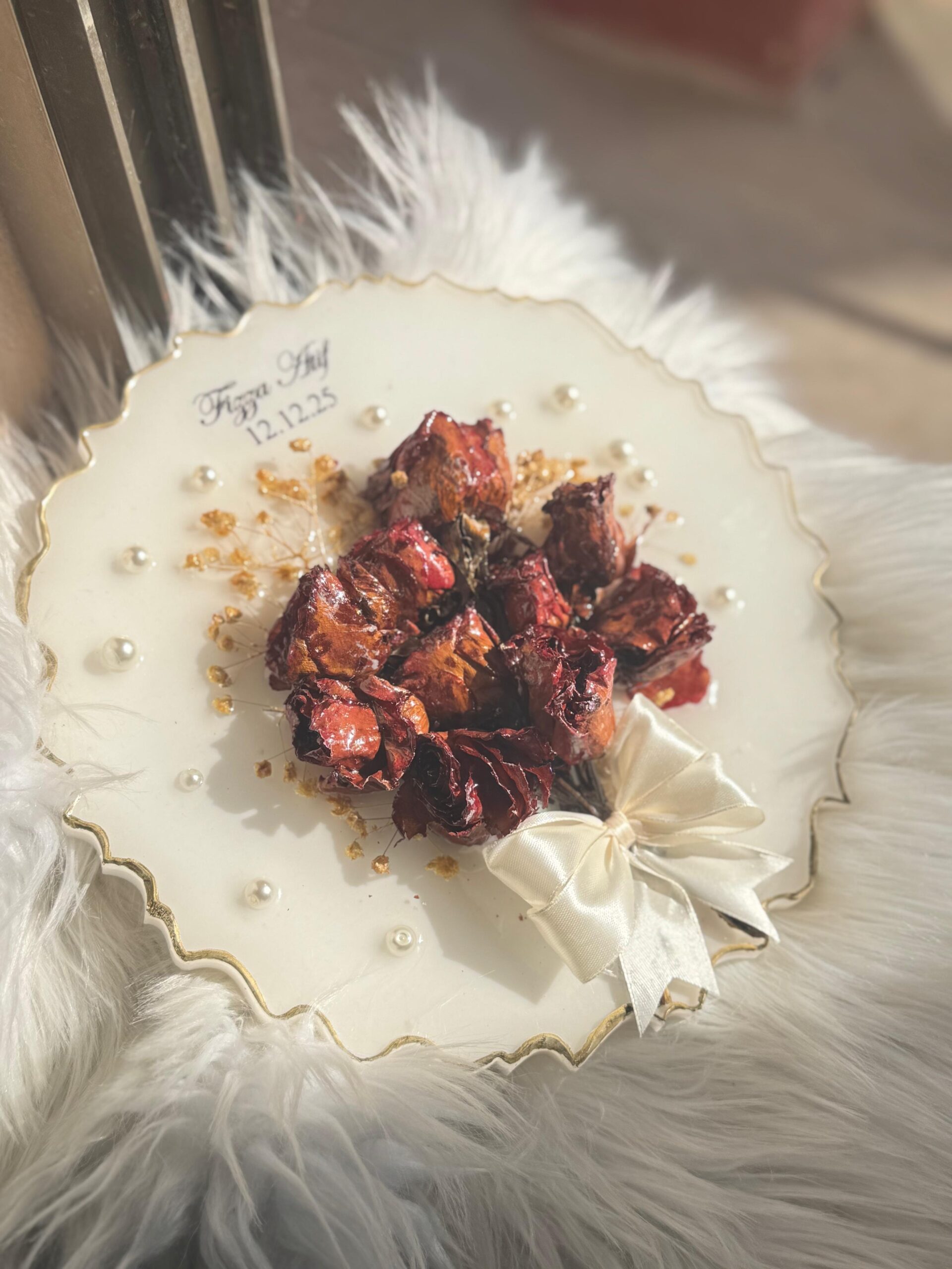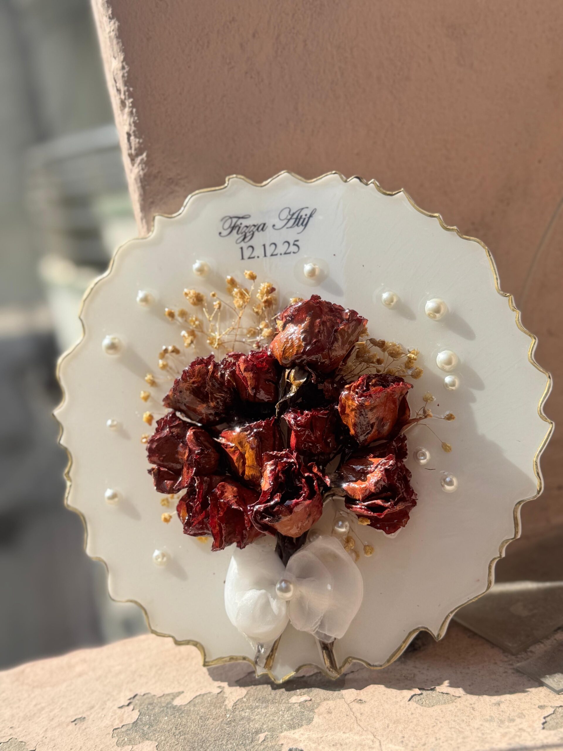 10 inches couple Resin tray customized for aniversary Flower preserved