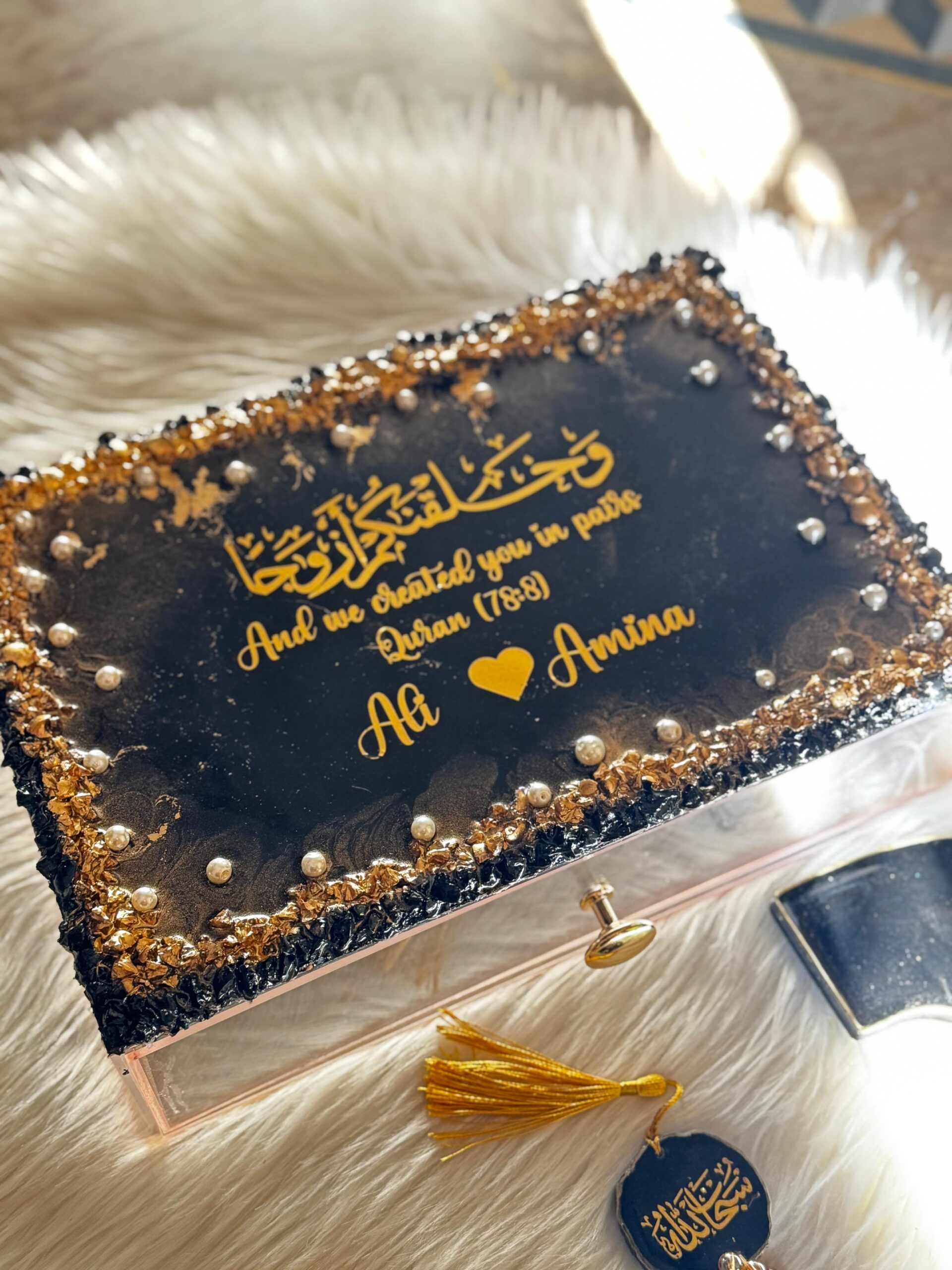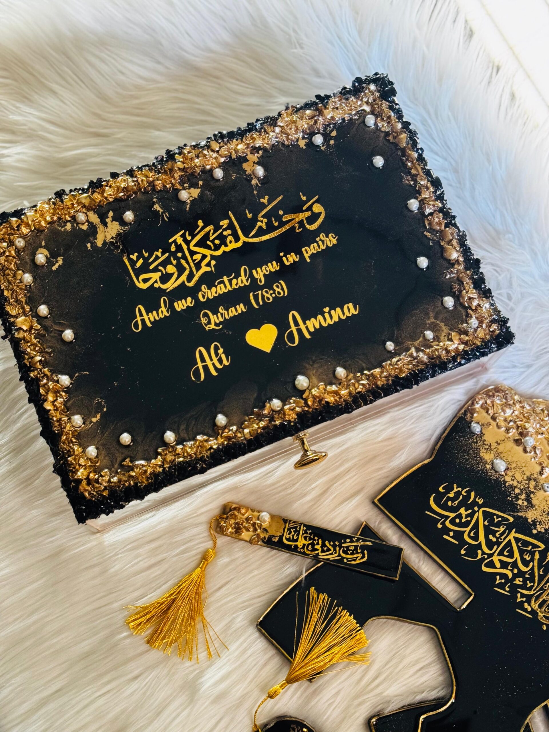 Be the first to review “Quran Box set in Jet black color with golden edges full set” Cancel reply