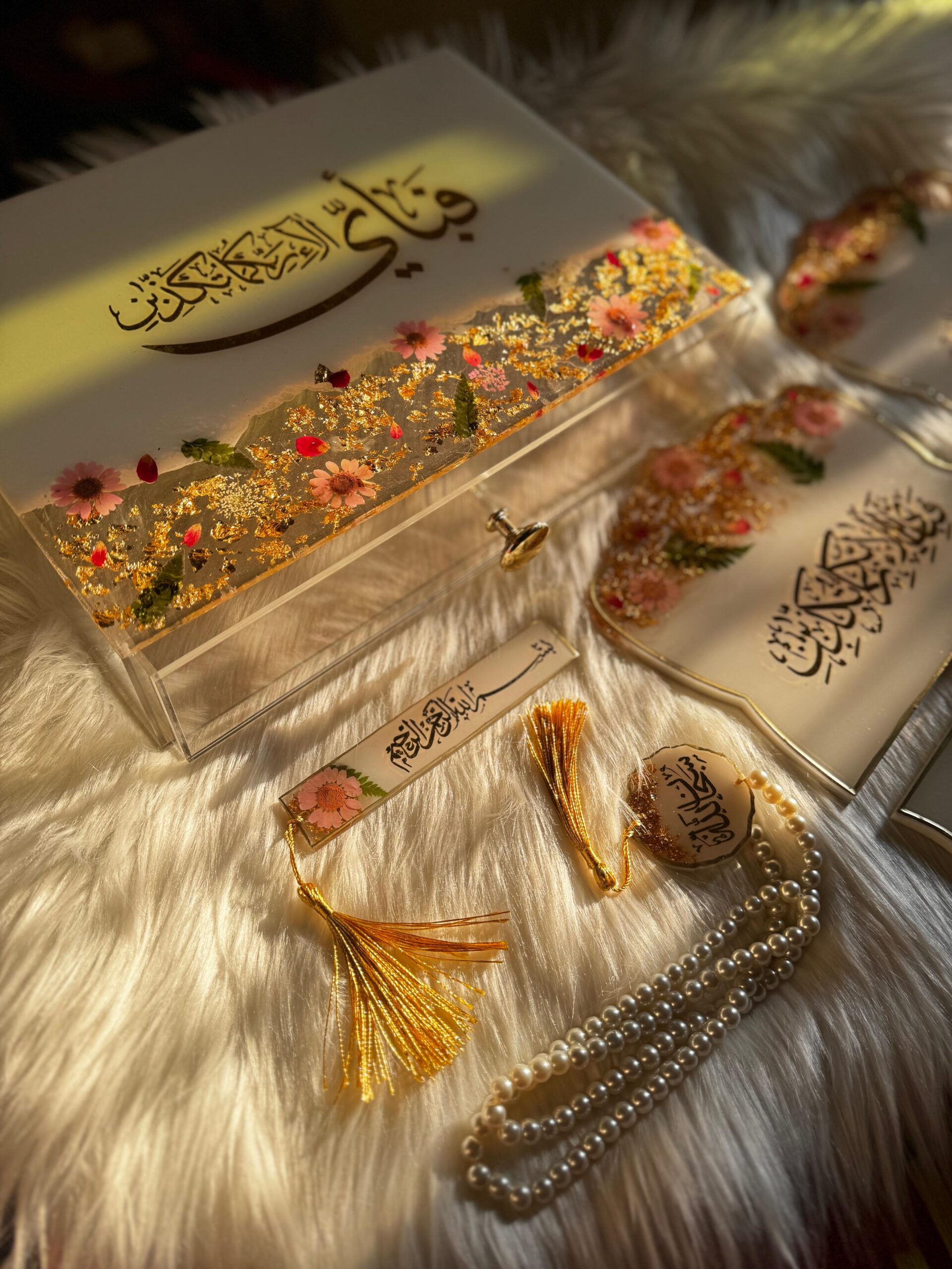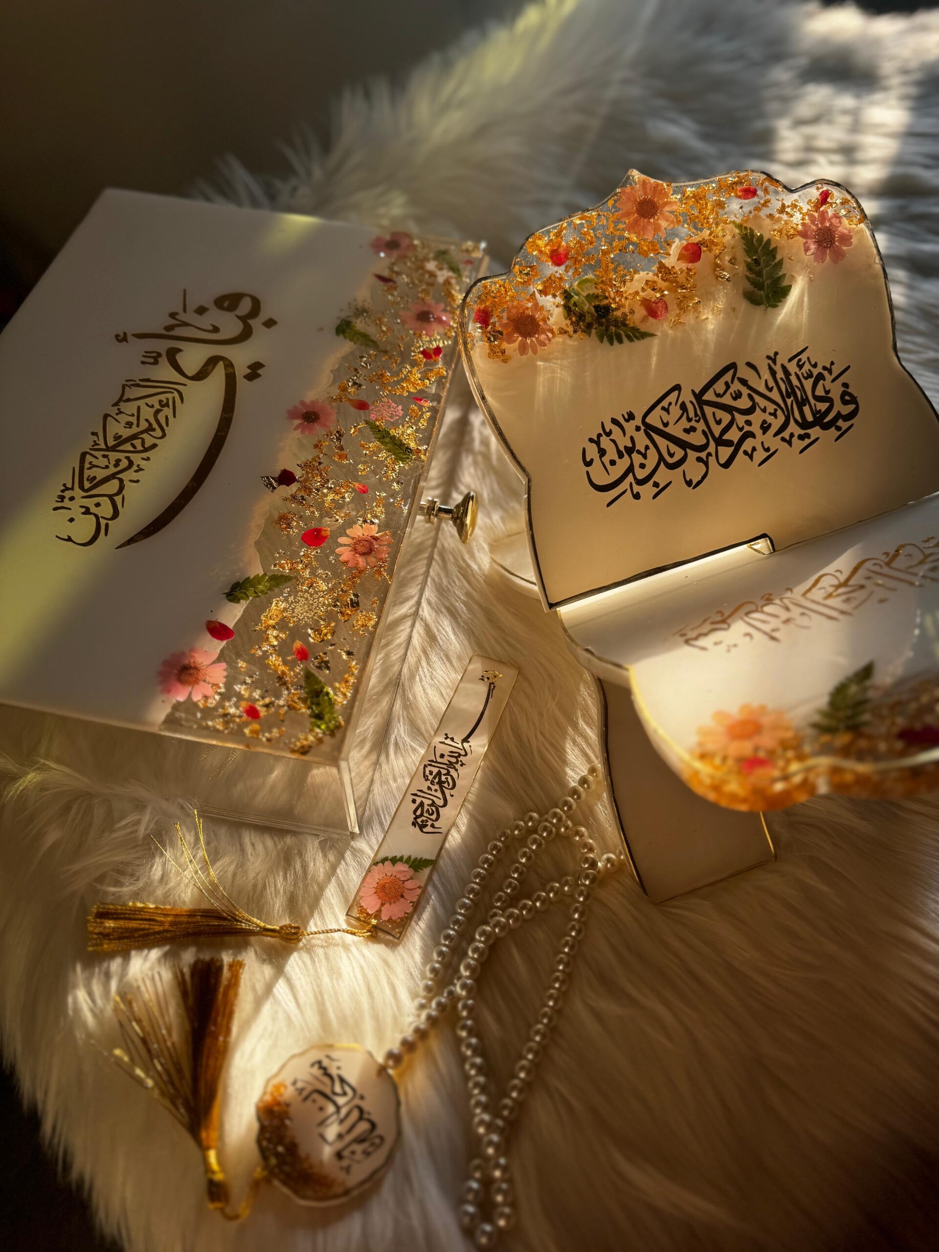 Be the first to review “Quran Box set in pure milky white color with golden edges full set” Cancel reply