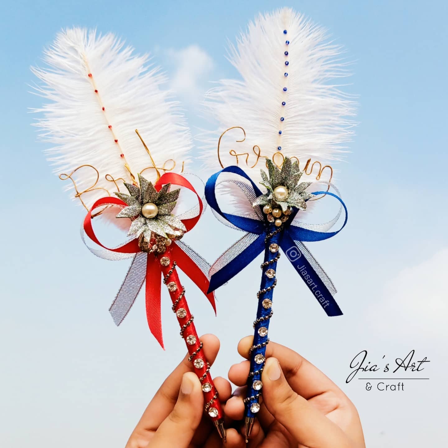 Red & Blue Nikkah Pens Pair Named As Bride Groom
