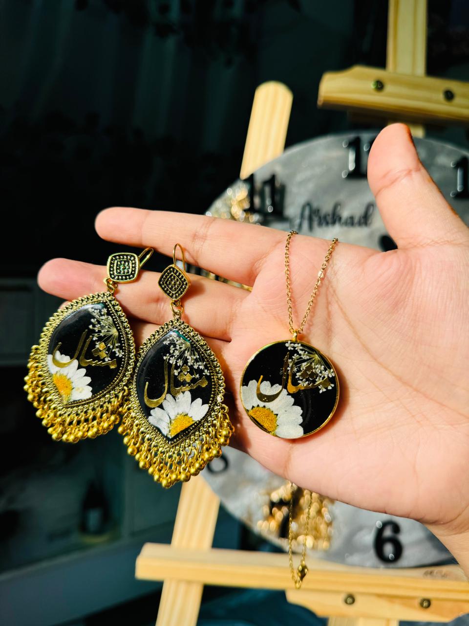 Resin Earings and pendent in black Color|| Resin Jewellery