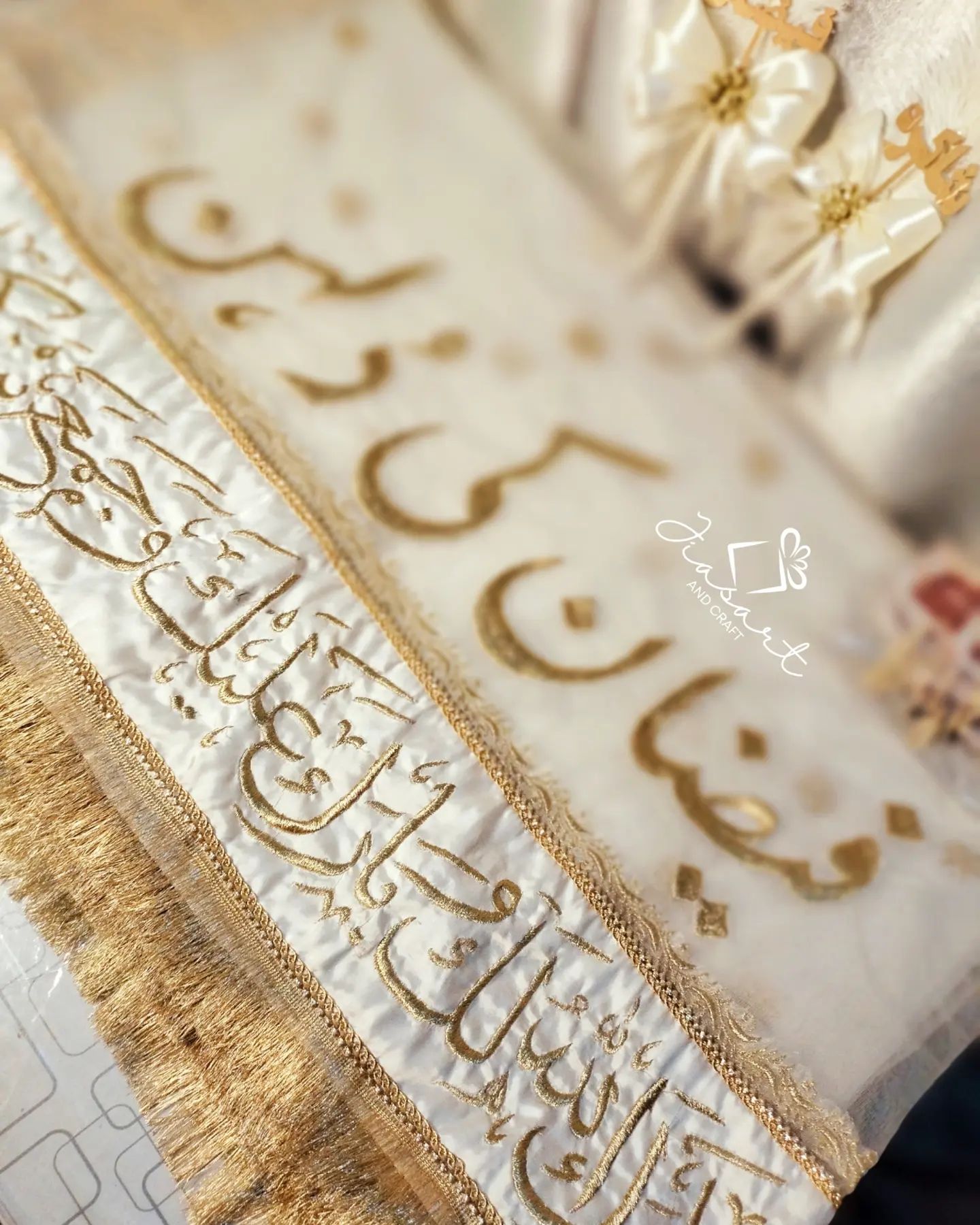White Dupatta With Front Side Arabic Work